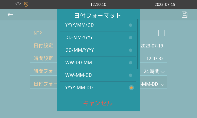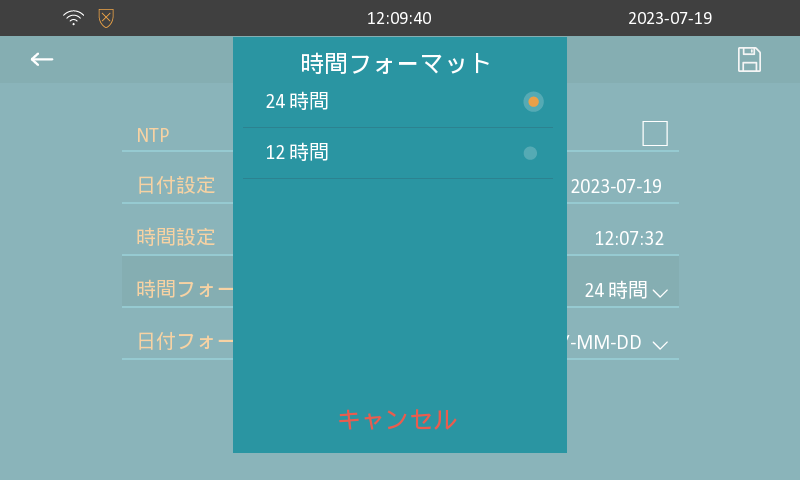 時間フォーマット画面内で任意の【フォーマット】を選択します。