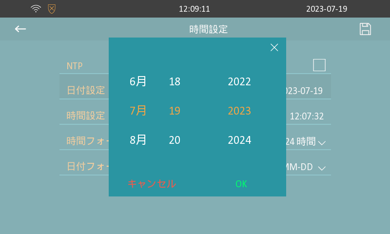 日付設定画面内で【年月日】を入力し【OK】をタッチします。
