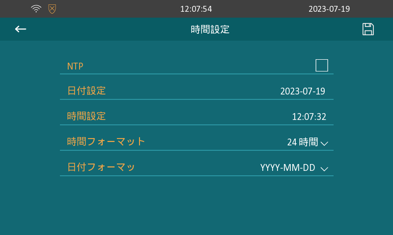 また、NTPサーバー・タイムゾーンの情報を変更すると、時間が正しく表示ない可能性がありますのでご注意ください。