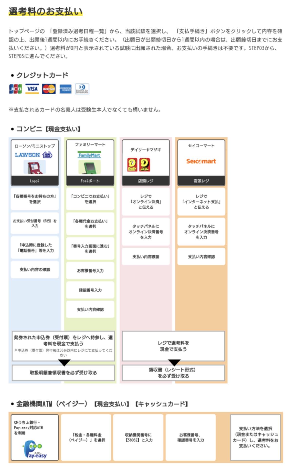 出願後、マイページTOPより「支払い手続き」ボタンを選択すると、選択した支払い方法に応じた手順が表示されますので、手順に従いお支払手続きを完了してください。