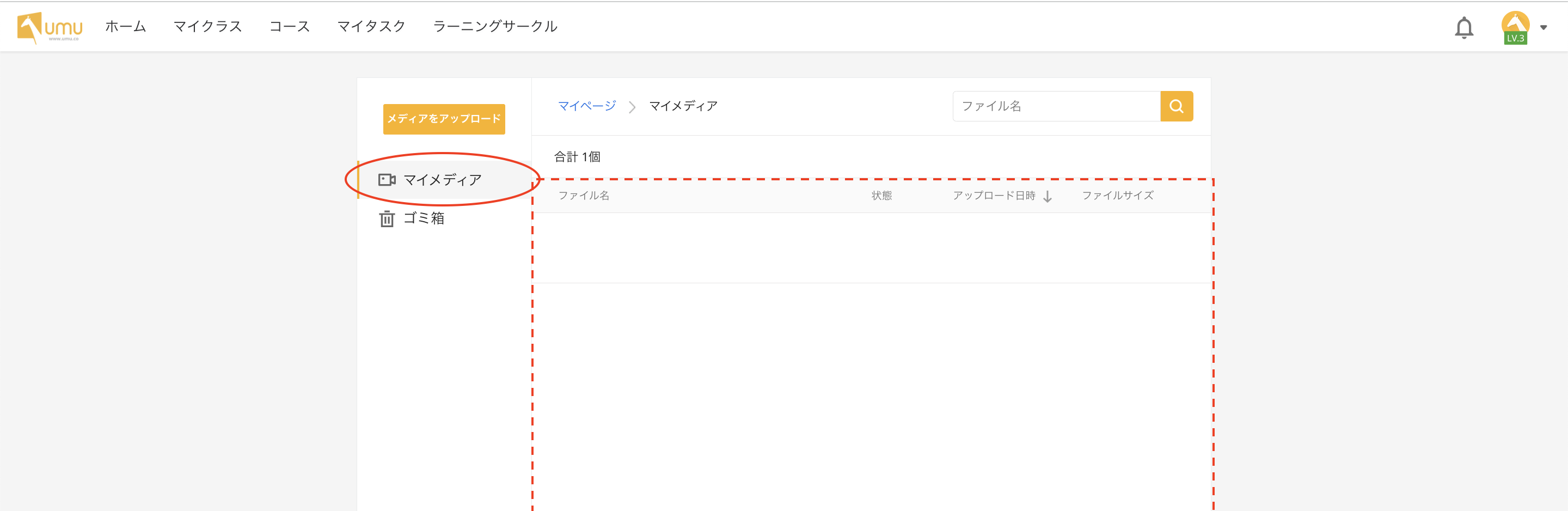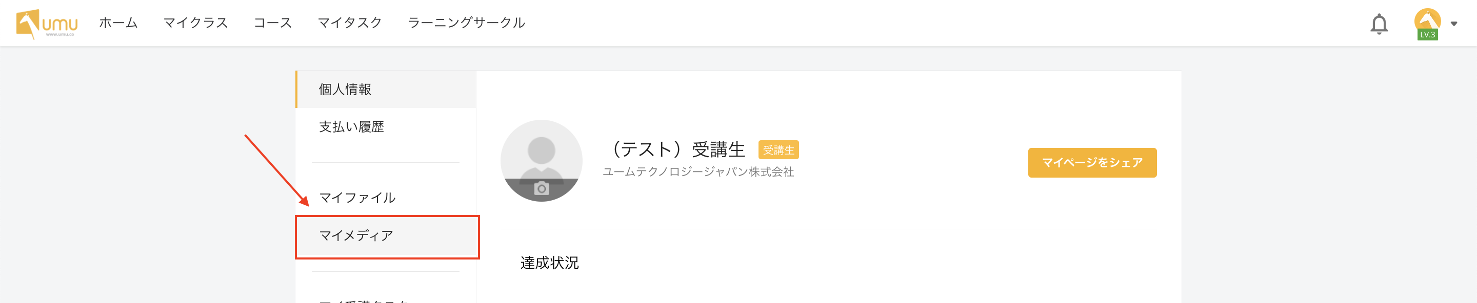 AIエクササイズ上で撮影した提出していない動画(スタートから停止までの操作をおこなったもの)は、受講生本人のマイメディアから確認することが可能です。