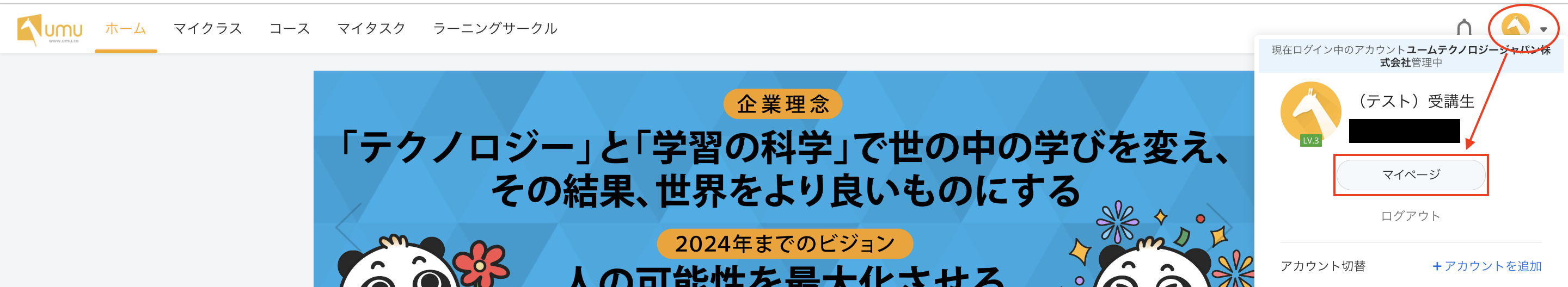 ① 右上のご自身のアイコンから「マイページ」をクリック
