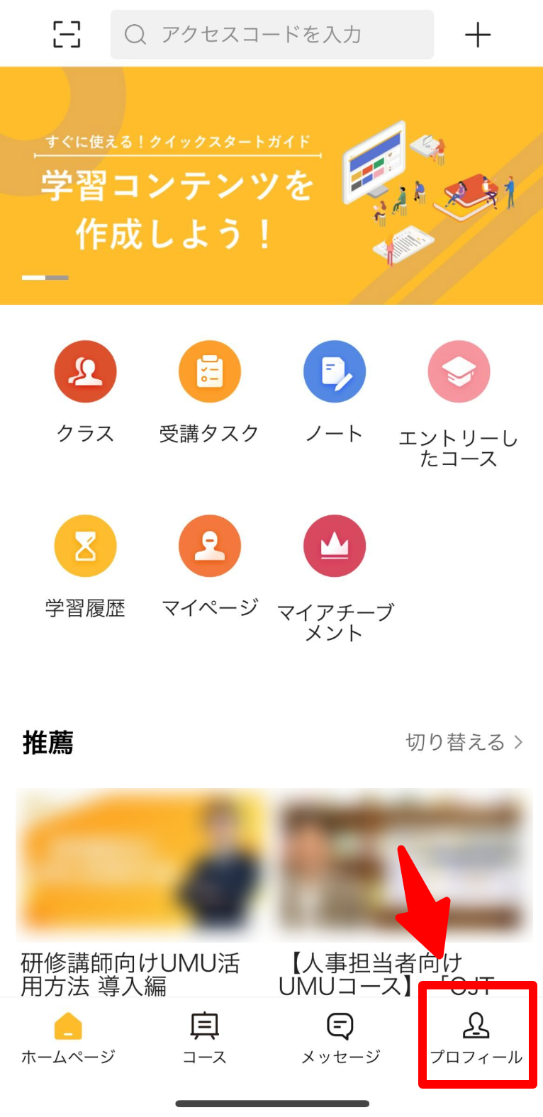 ①画面右下の「プロフィール」を選択