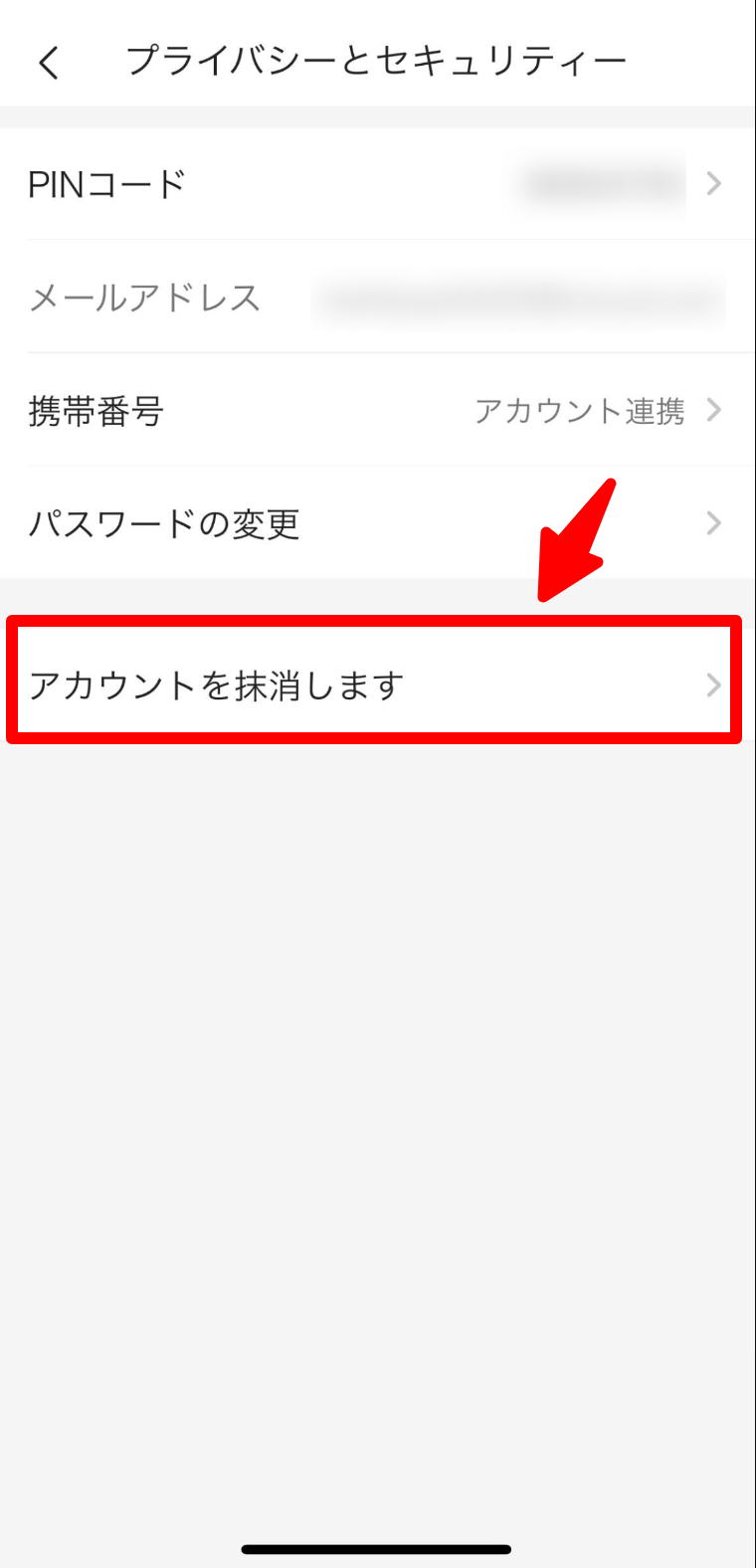 ③「アカウントを抹消します」を選択