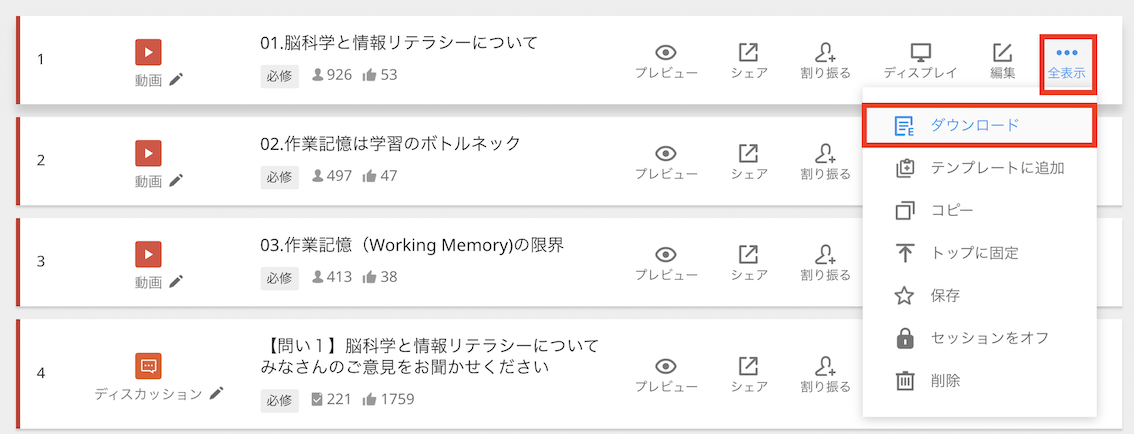 各動画セッションの全表示>ダウンロード ボタンよりデータをダウンロードいただけます。