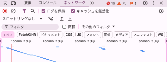 3.「デベロッパー ツール」で「Network」タブを選択します。