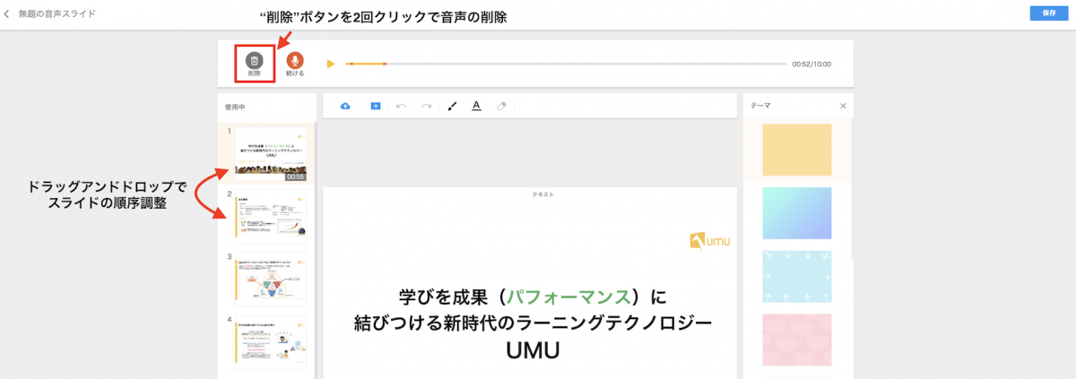 一度保存を行った場合、音声スライドの編集は不可となります。