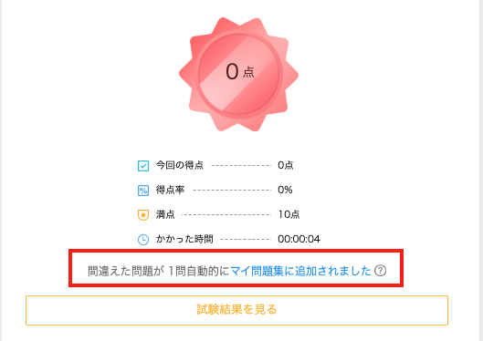 間違えた問題が自動的に問題集へ保存されるような仕様となっております。
