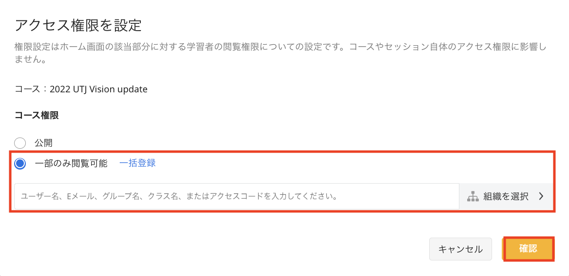 公開したい範囲を選択する際は、