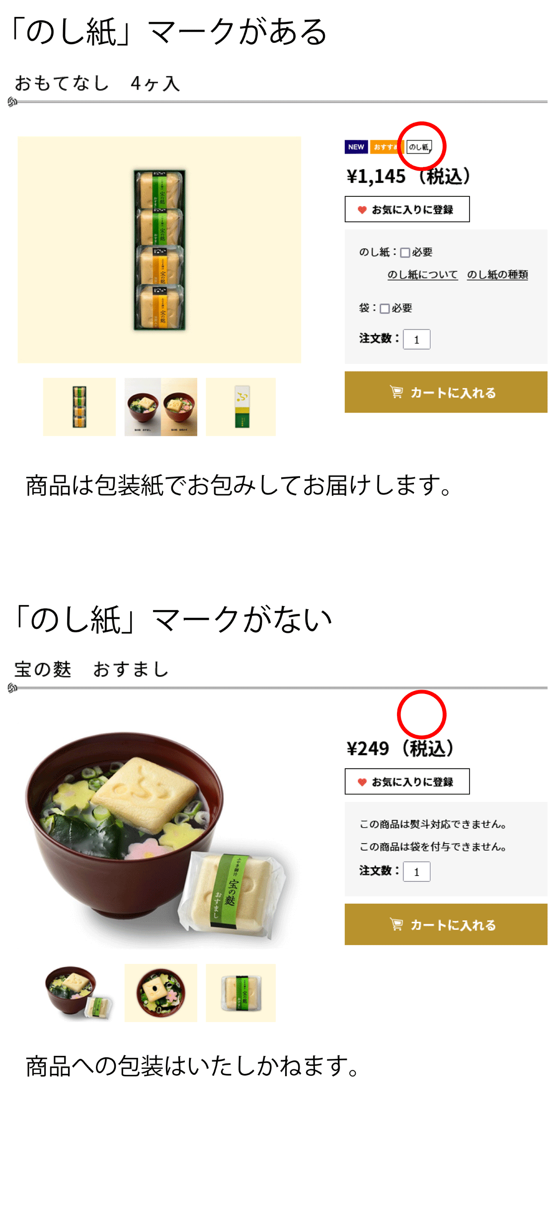 ※「のし紙」マークの付いていない商品への包装はいたしかねます。