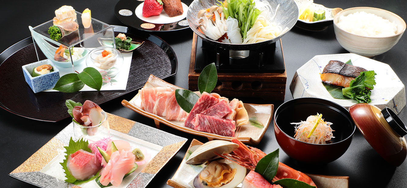 伊豆の旬な素材を使った創作会席のコース料理をご用意しております。伊豆の味覚を存分にお楽しみくださいませ。