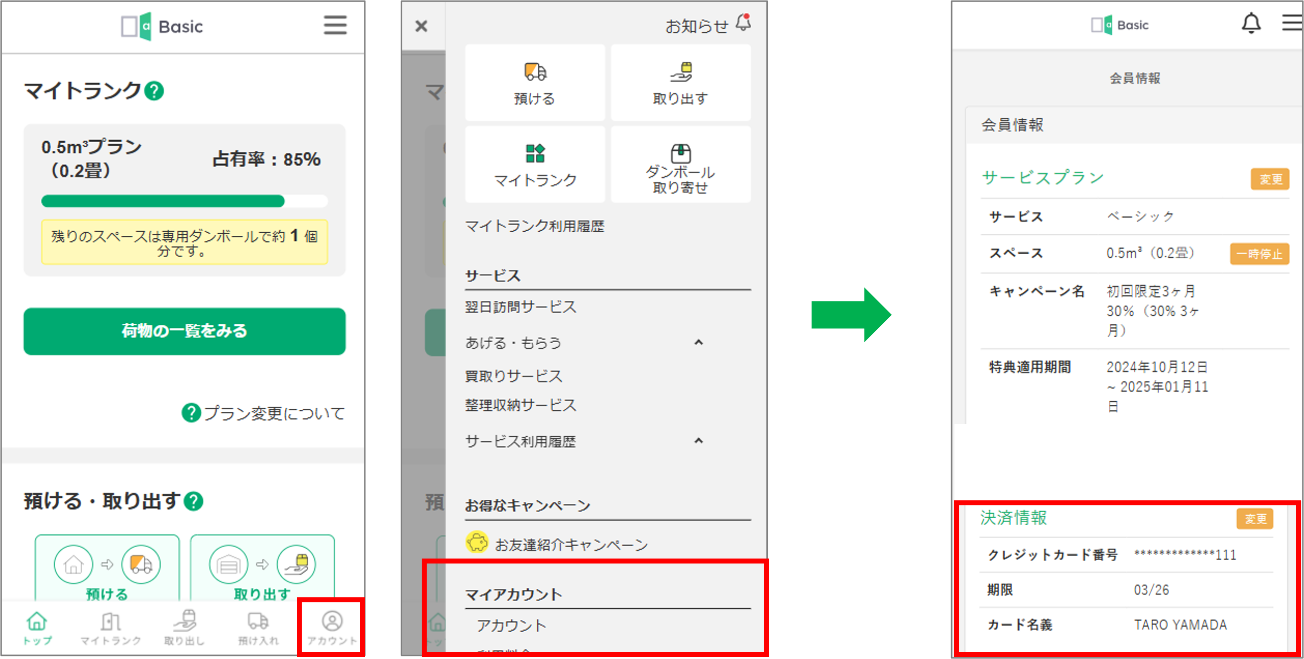 クレジットカードの登録方法について 【ベーシック・プレミアム共通】 メニューの「アカウント」をクリック ↓ 「決済情報」の横の「変更」ボタンをクリック 必要情報を記入し登録をお願いいたします。 # 料金 # マイページ # ログイン