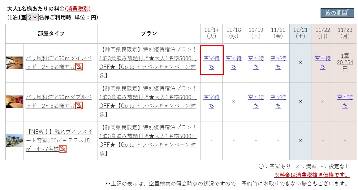 「空室待ち」のURLからお手続きいただき、お部屋に空きが出た場合メールをお送り致します。