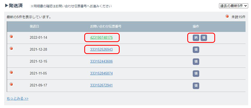 出荷完了後に「発注履歴」>「発送済」リストより、