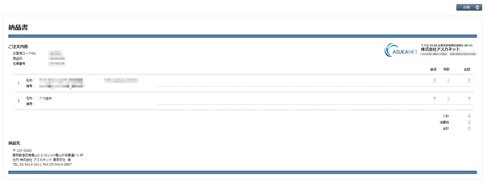 「納」マークをクリックすると、納品書を表示・印刷することができます。