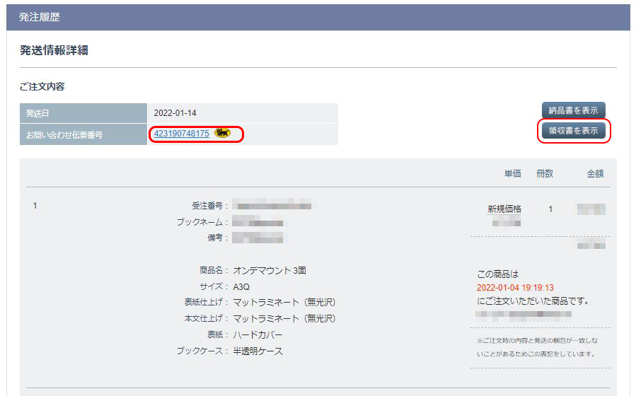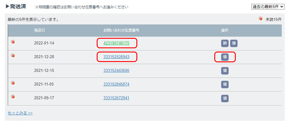 出荷完了後に「発注履歴」>「発送済」リストより、