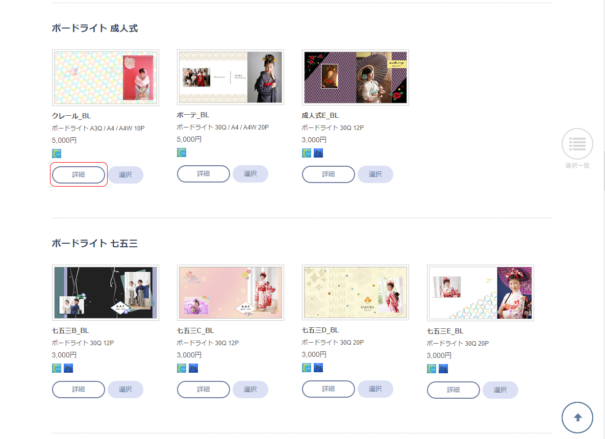 マイページのショップでは、アルバム制作をサポートするデザインテンプレートを販売しています。