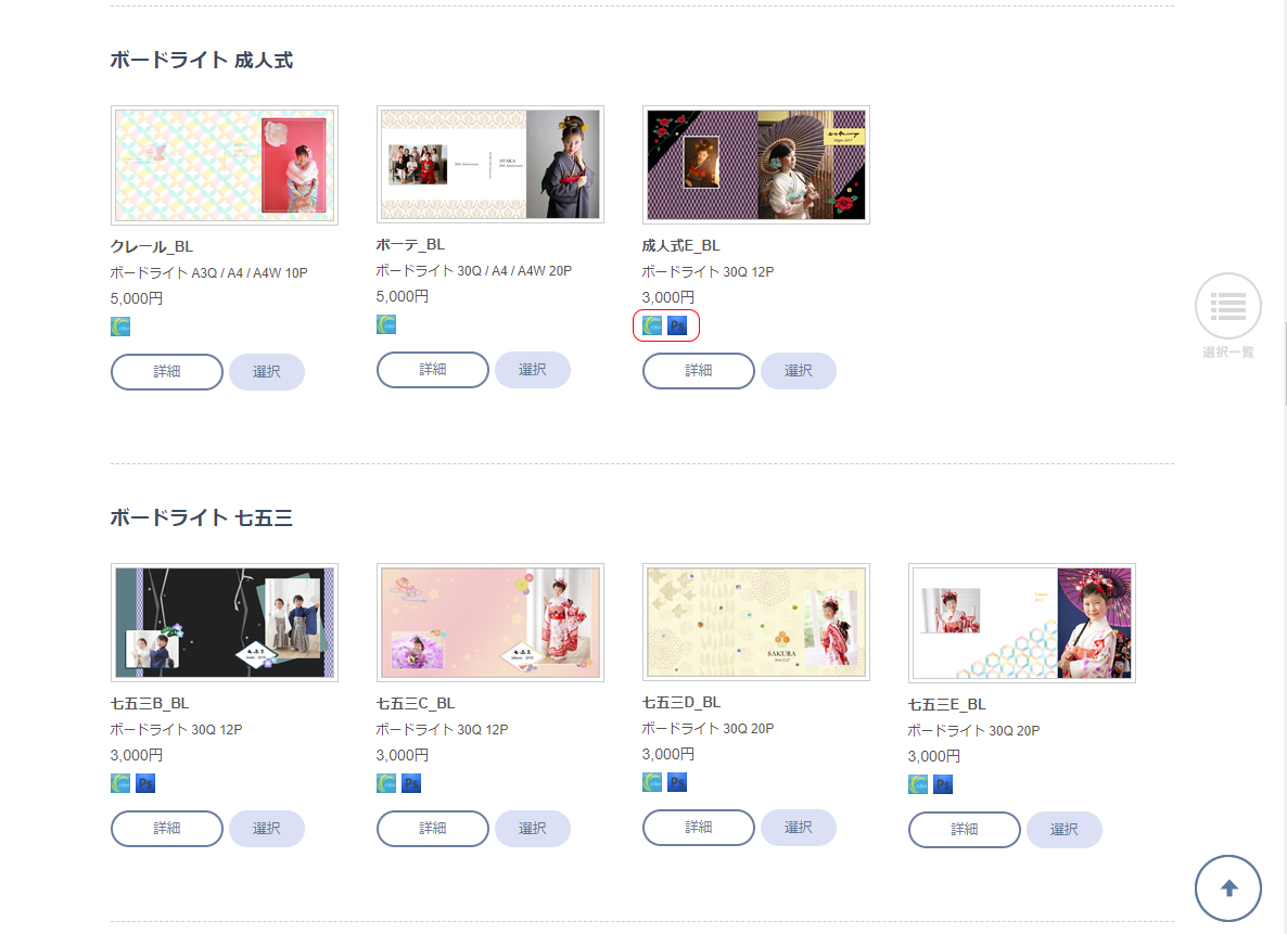 価格下のアイコンにてASUKABOOK Maker2またはPhotoshopのどちらで使用可能なテンプレートか、ご確認いただけます。