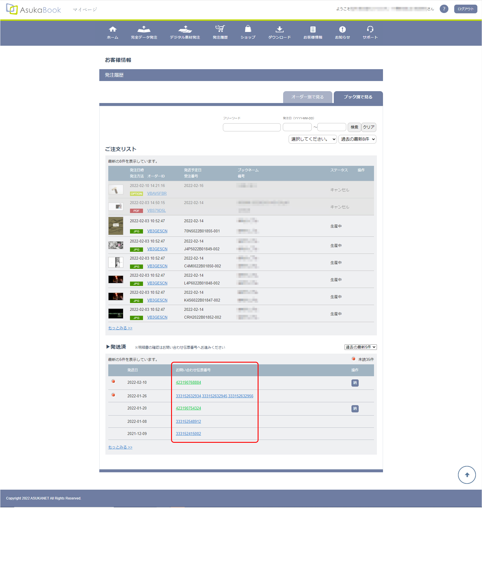 発送済商品のお問い合わせ伝票番号の確認について 発送済商品のお問い合わせ伝票番号をマイページで確認することが可能です。 発注履歴>発注済にある該当データの「お問い合わせ伝票番号」を選択してご確認ください。 # 納期 # 発送 # 商品