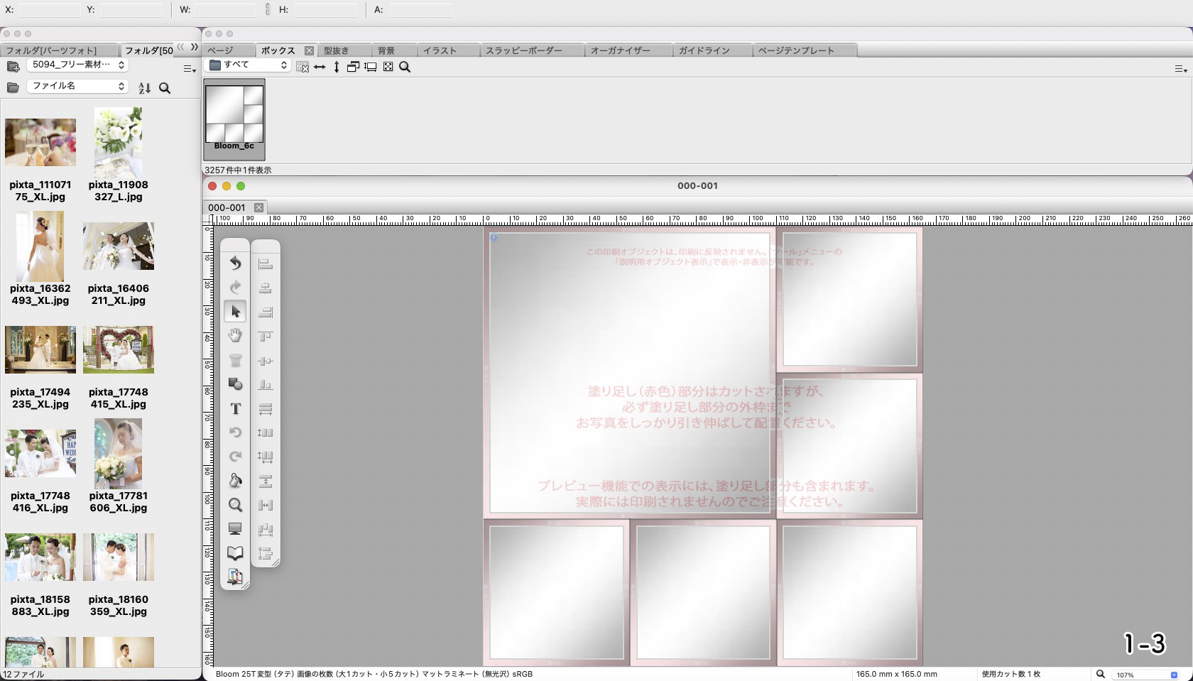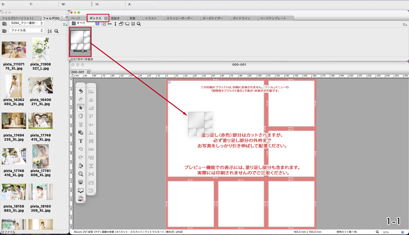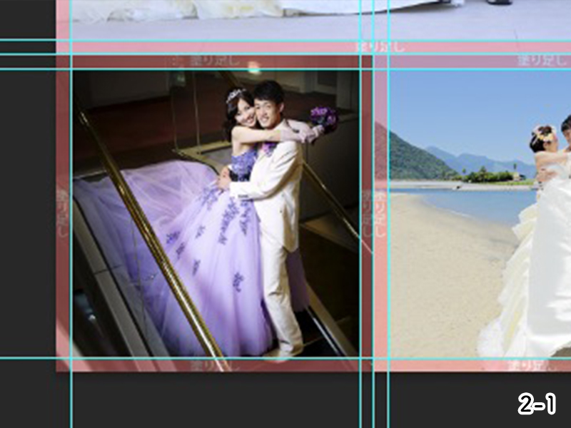 3. 塗り足しの表示に合わせ、写真を配置する(画像参照2-1)