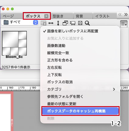 三本線をクリックし「ボックスデータのキャッシュ再構築」を