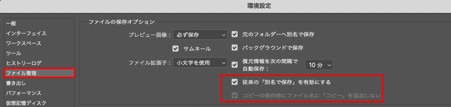 Mac:Photoshop>環境設定>ファイル管理以下の2箇所にチェックを付ける
