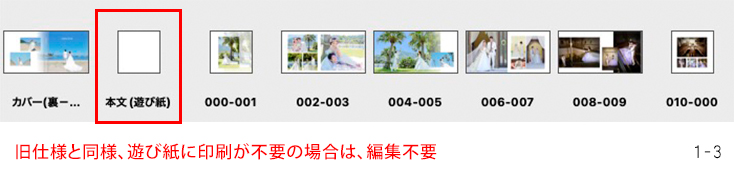 └旧仕様と同様、半透明の「遊び紙」に何も印刷しない場合は編集不要