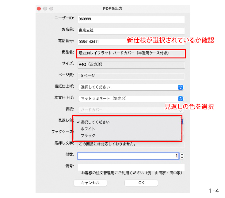 └見返しの色が選択できるようになっているため、
