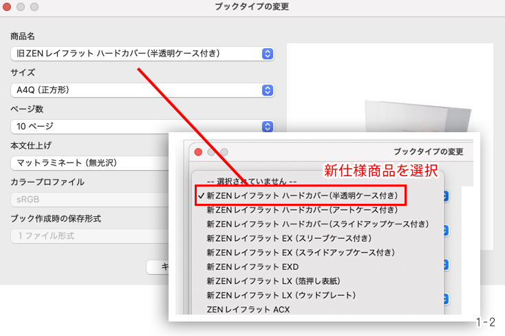 3. ブックタイプの変更(画像1-1参照)をクリックする