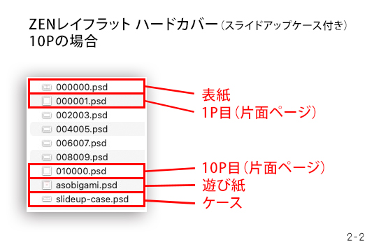 例) ZENレイフラット ハードカバー(スライドアップケース付き)10Pの場合