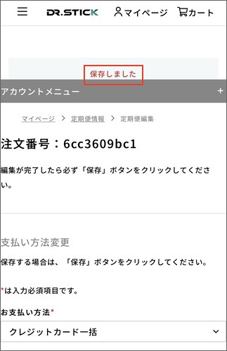 3.「保存しました」と表示され、「配送サイクル」が変更されていれば完了です。