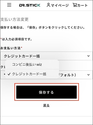 3.ご希望のお支払い方法を設定し、「保存する」を選択します。