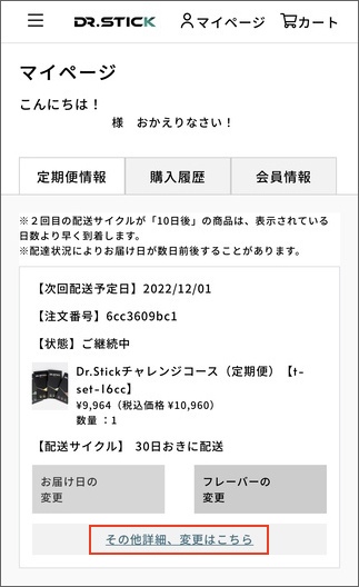 1.マイページログイン後、該当定期情報の「その他詳細、変更はこちら」を選択します。