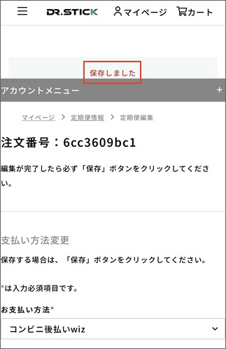 4.「保存しました」と表示されると変更完了となります。