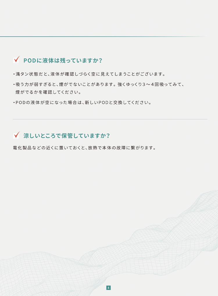 ※開封したばかりのPODに液体が入っていない様に見える場合は、下記をご確認ください。