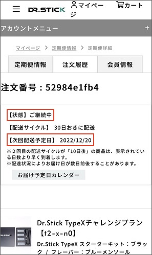 3.【状態】が「ご継続中」、【次回配送予定日】が選択した日にちとなっていれば完了です。