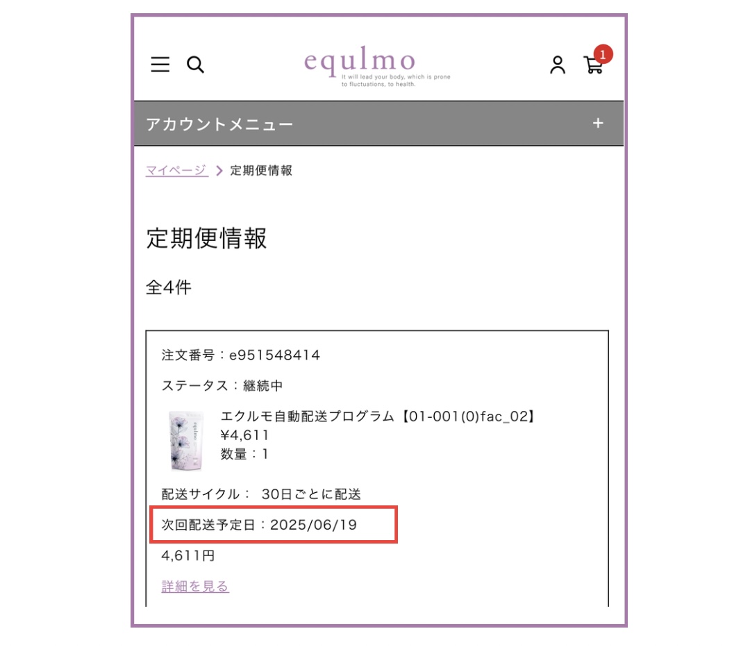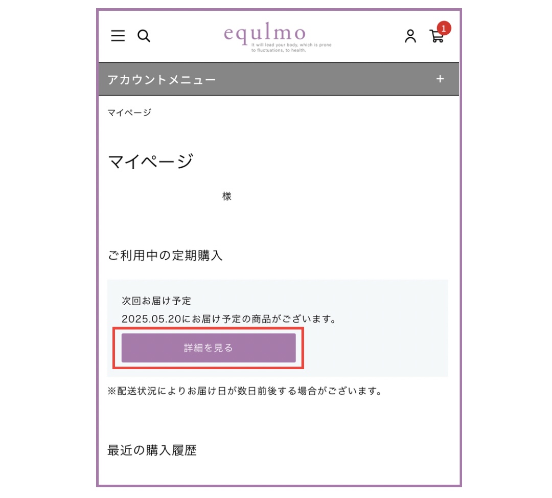 1.マイページログイン後、お手続きしたい定期便の「詳細を見る」を選択します。