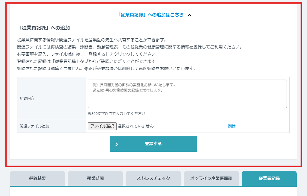 ◆こちらで登録した情報は産業医側へも共有されます◆