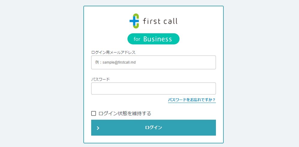 1.申込確認後、貴社専用のアカウントを設定します。アカウント設定完了後、first call法人窓口より連絡します。