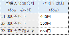※ご購入金額合計に応じて、代引手数料は変わります。(上表参照)