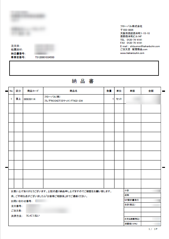- 納品書の宛名は商品のお届け先のお名前での発行となります。
