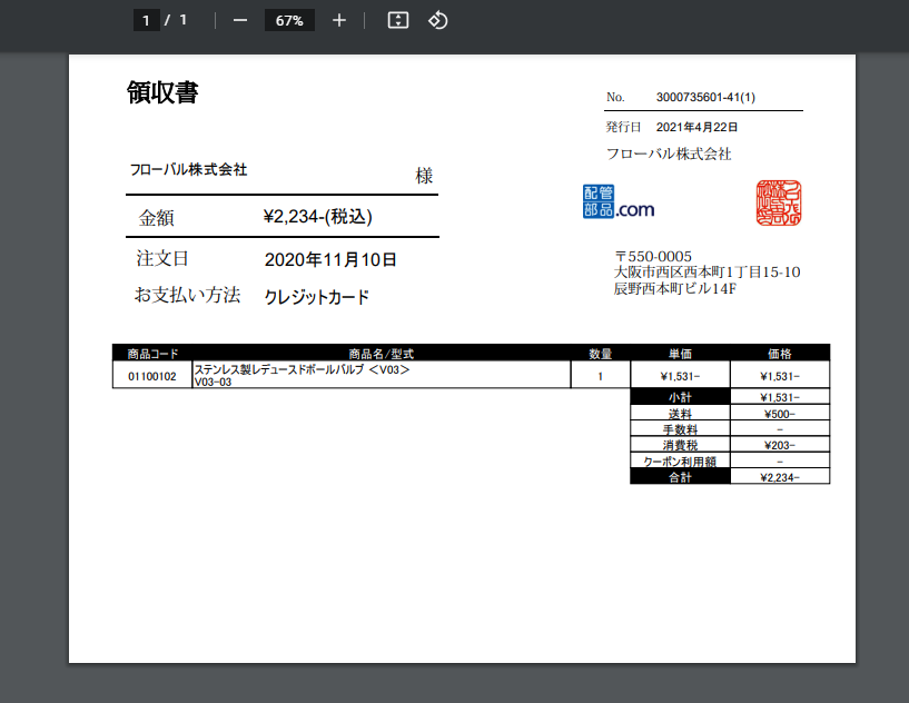- 発行可能回数:ひとつのご注文につき一度だけ発行できます(再発行はできません)