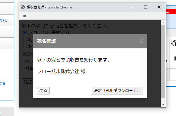 - 領収書発行日:領収書発行ボタンを押した日付となります
