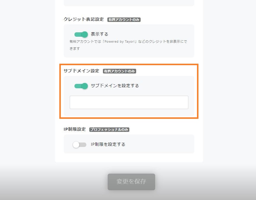 「xxxx.tayori.com」の「xxxx」部分を変更することが可能です。(文字数制限50文字)
