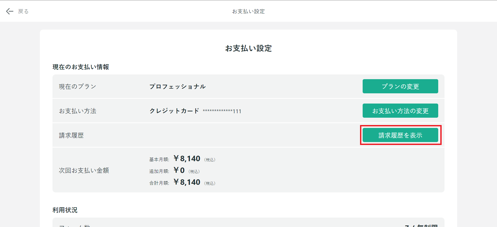 請求書はご利用月の翌月1日に「請求履歴」よりPDFダウンロードが可能となります。