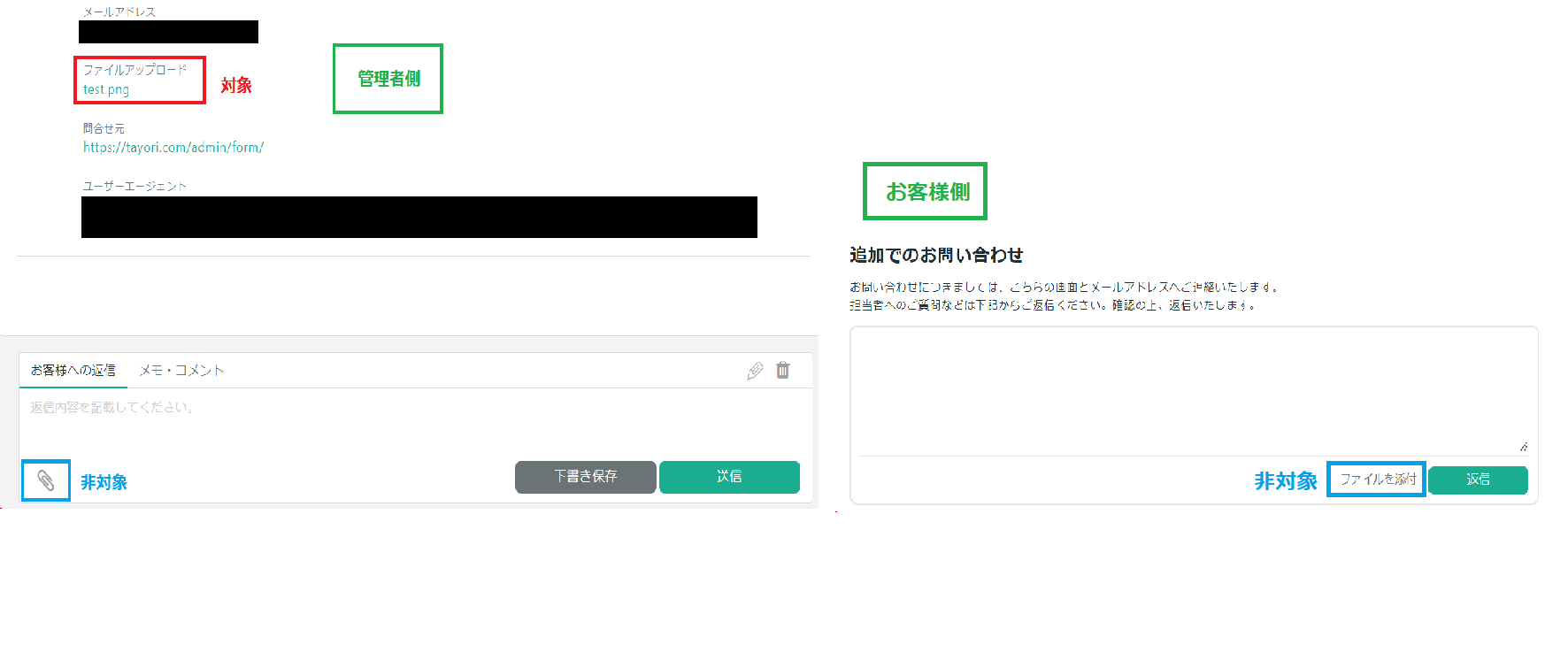 フォームに設置された「ファイルアップロード」項目に、お客様が添付の上送信されたファイルのみが該当いたします。