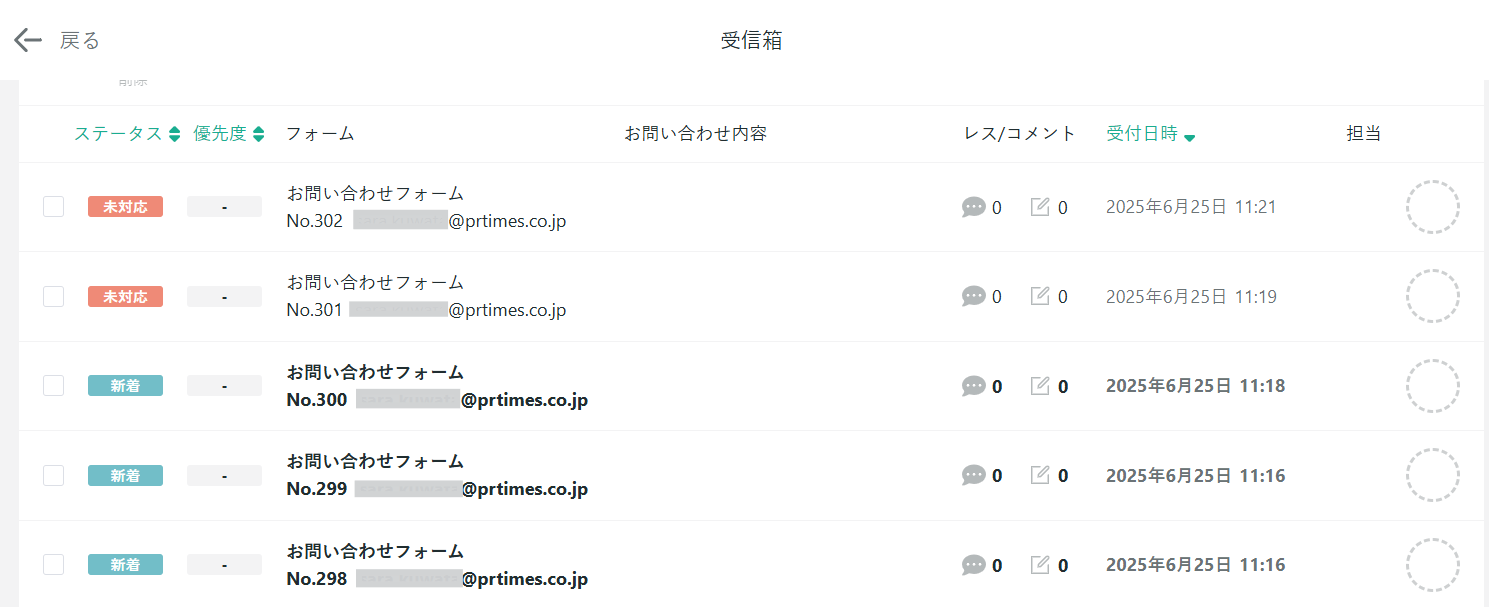 2025年6月25日(水)14:00のリリース以降のお問い合わせ・返信が対象です。