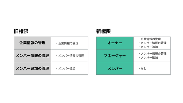 上記のメンバー権限の各名称を変更し、現在のメンバー権限を引き継ぐ形で、役割の範囲を変更いたします。詳細は下記表をご確認ください。