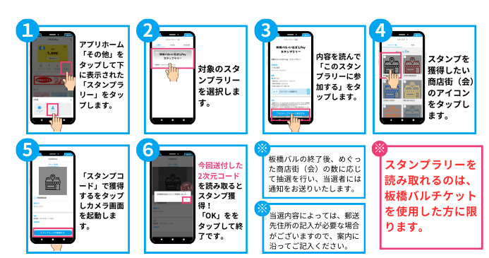 チケットを使用後に起動したカメラを参加店に置いてある2次元コードを読み取ってスタンプを獲得します。