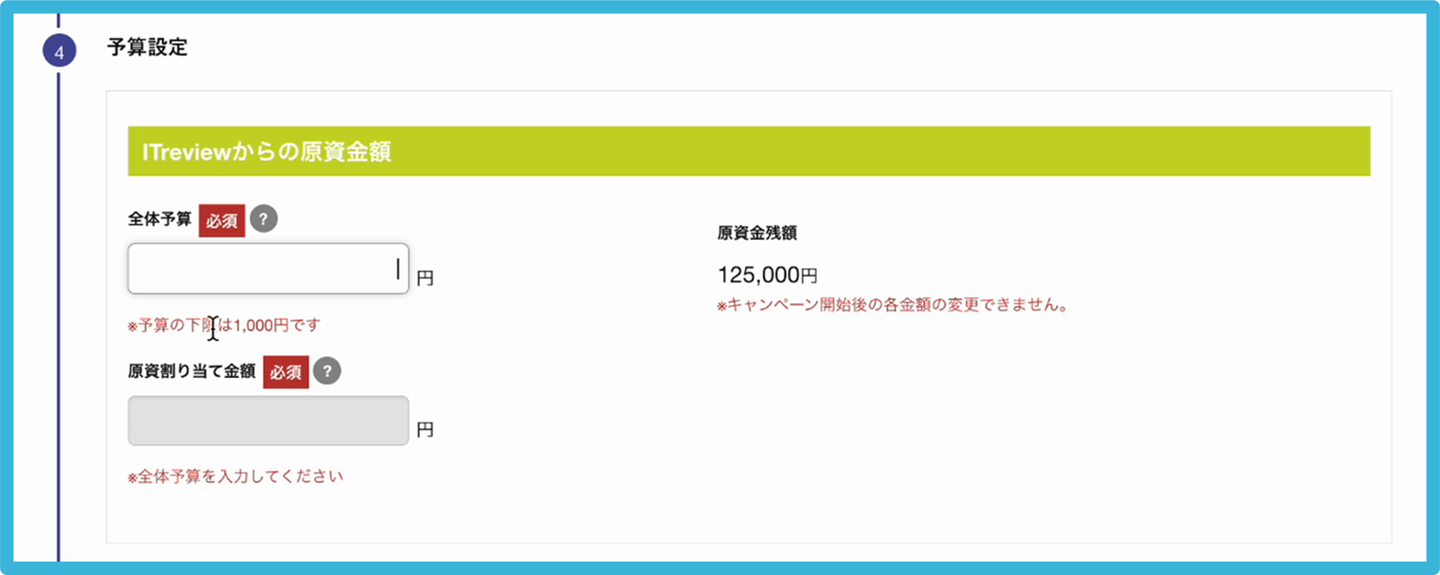 ・キャンペーンが開始した後は「原資割り当て金額」を変更することはできません。